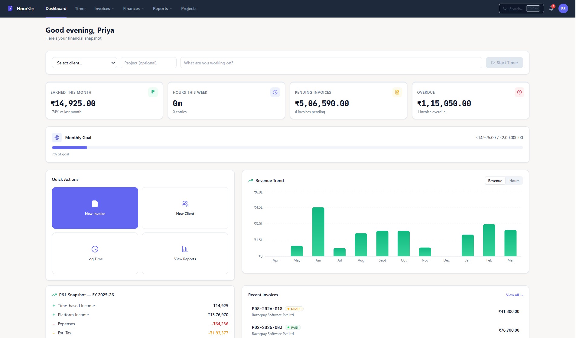 “Filing TDS reconciliation used to be a complete nightmare. HourSlip flags every mismatch before my CA even asks. I look so organised now it's embarrassing.”